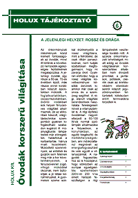 A HOLUX Hírek című, elektronikus úton terjesztett műszaki/kereskedelmi tájékoztató kiadvány rendszeres megjelentetése mellett a HOLUX Kft. folyamatosan publikál szakcikkeket hazai nyomtatott és internetes folyóiratokban. A cikkek témája felöleli a világítástechnika egész területét, így az írások hasznos segítséget nyújthatnak a világítás tervezése, korszerűsítése kapcsán. A tájékoztató anyagokban található lámpatestek, fényforrások többsége megvásárolható budapesti központunkban, vagy online a HOLUX fényáruházában (www.fenyaruhaz.hu). Bõvebb információ, felvilágosítás: hoso@holux.hu |